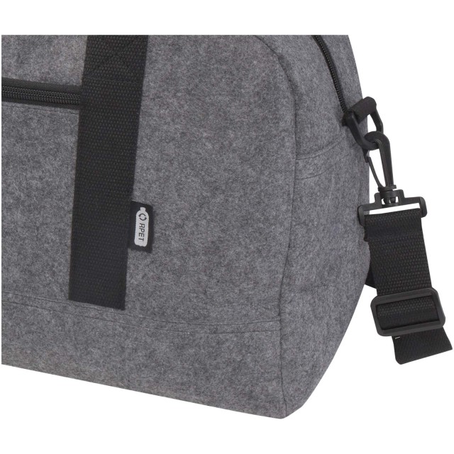Praktická sportovní taška vyrobená ze špičkové měkké a odolné recyklované plsti s certifikací GRS. Obsahuje velkou hlavní přihrádku, přední kapsu na zip, boční kapsu, odnímatelné a nastavitelné ramenní popruhy a pohodlná bavlněná ucha pro různé způsoby nošení. Vybaveno malými nožičkami/cvoky na dně, takže se taška nedotýká země, což pomáhá předcházet tomu, aby se taška neznečistila nebo nenavlhla. Objemová kapacita: 35 litrů.