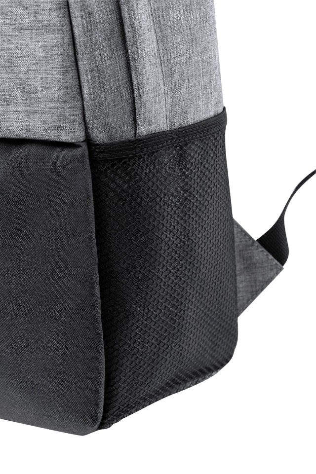 Dvoubarevný batoh RPET s hlavní kapsou na zip, polstrovanou přihrádkou na notebook (15 ") a tablet (10"), postranními kapsami, polstrovanými zády a ramenními popruhy. 600D RPET polyester.