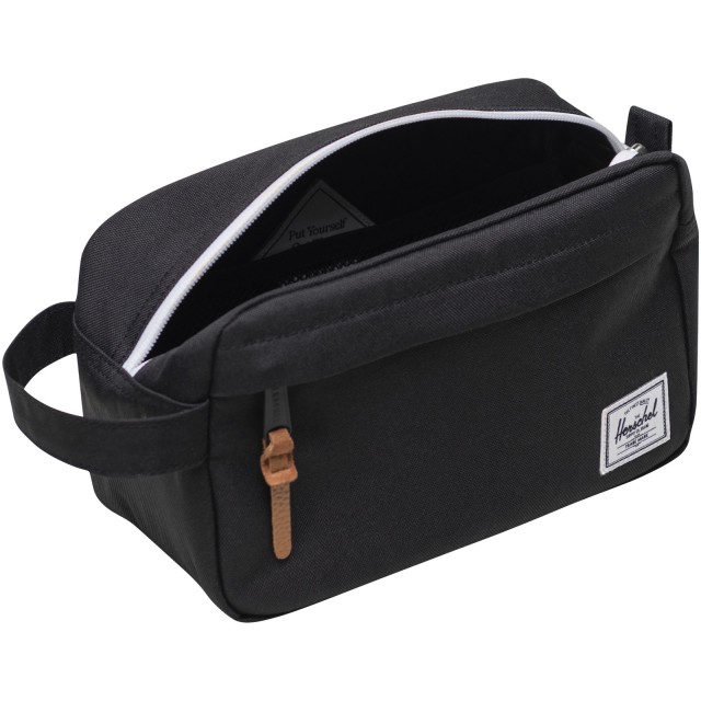 Kosmetická taštička Herschel Chapter – perfektní společník na delší cesty. Použijte ji k snadnému uložení zubního kartáčku a toaletních potřeb nebo rozšiřte její obzory a udržujte své drobné nezbytnosti, jako jsou ponožky, nabíječky, průvodce a mapy, dokonale uspořádané v zavazadle. Látka 600D je odborně vyrobena ze 100% recyklovaných spotřebitelských láhví na vodu, díky čemuž je ekologická a odolná. Vodotěsné zavírání na zip zajišťuje, že vaše nezbytnosti zůstanou chráněny, zatímco pohodlná boční rukojeť umožňuje snadné přenášení. Kosmetická taštička Herschel Chapter je navržena s dalšími možnostmi uspořádání, obsahuje přední kapsu na zip a vnitřní síťovaný úložný prostor, což vám poskytuje jedinečné možnosti ukládání. Dobrodružství čeká a taštička Herschel Chapter je připravena připojit se k vám na vaší další cestě.