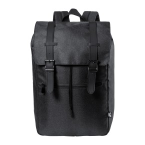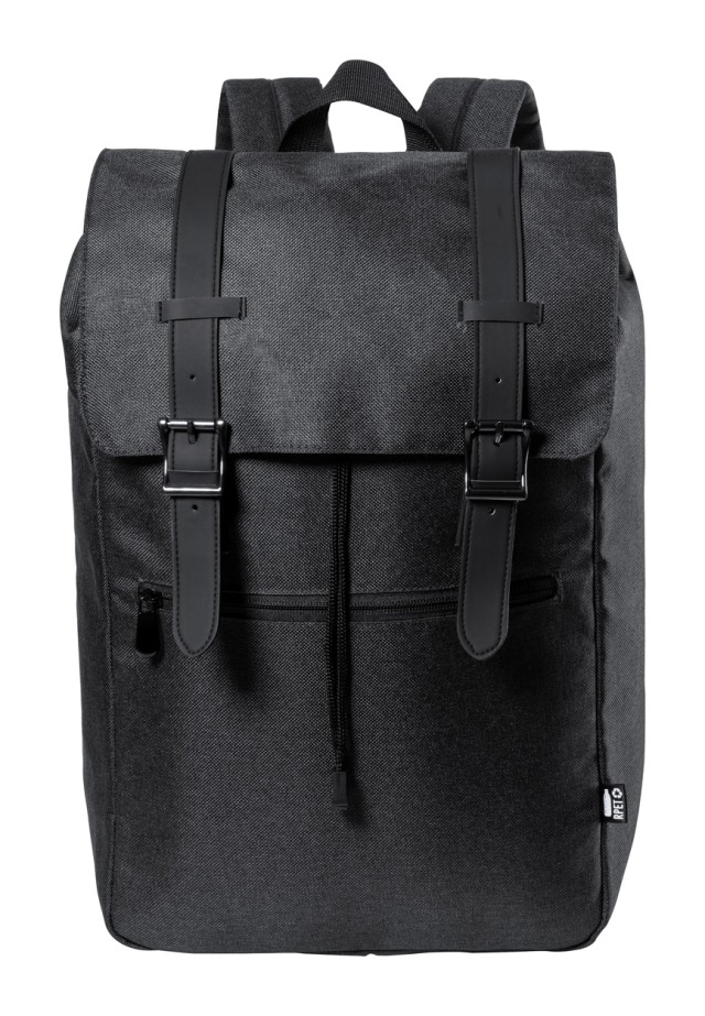 RPET batoh s polstrovanou přihrádkou na notebook (15") a tablet (12"), přední kapsou na zip, polstrovanými zády a ramenními popruhy. Hlavní komora se stahovací šňůrkou a magnetickým zapínáním na knoflík. Polyester 300D RPET. S výrazným štítkem RPET.