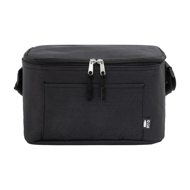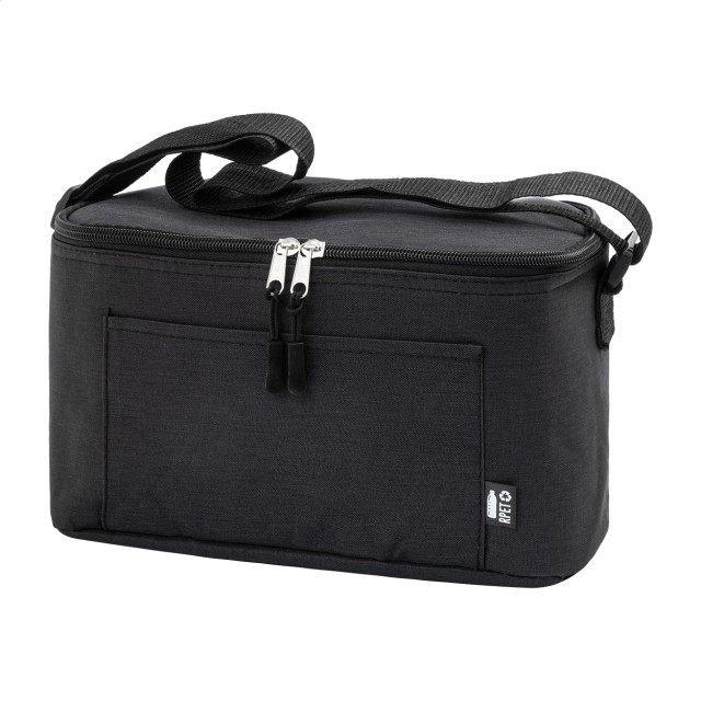 Chladící taška na zip z RPET s hliníkovou vložkou, pro 6 ks 0,33L plechovek. S přední kapsou a nastavitelným ramenním popruhem. 600D RPET polyester s výrazným štítkem RPET.