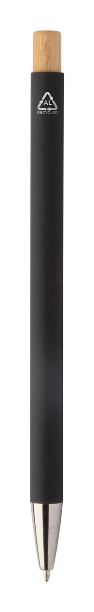 Kuličkové pero z recyklovaného hliníku s pogumovaným povrchem a bambusovým tlačítkem a chromovými detaily. Se speciální vrstvou pro zrcadlové laserové gravírování. S modrou náplní.