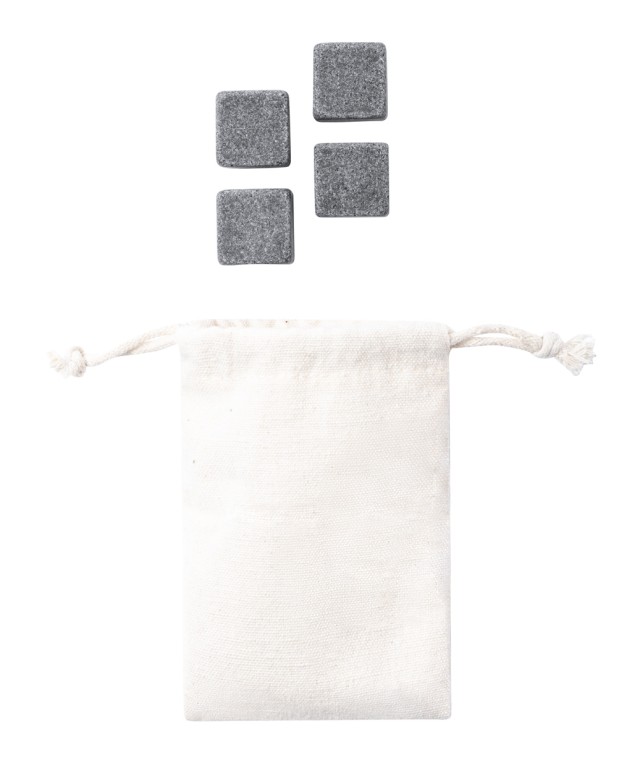 Sada 4 ks opakovaně použitelných kamenných kostek na led v bavlněném sáčku.