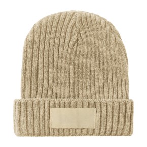 Akrylová pletená zimní čepice s nášivkou na potisk.