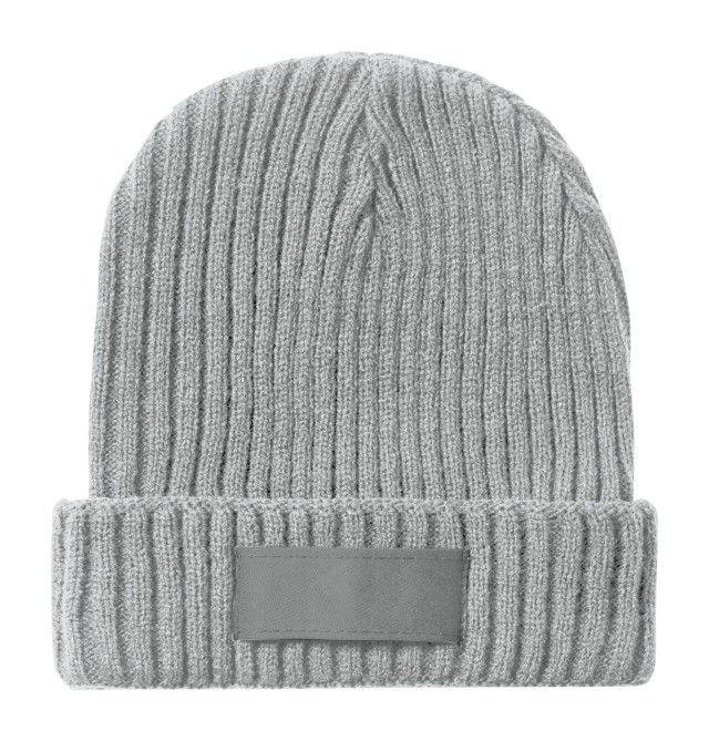 Akrylová pletená zimní čepice s nášivkou na potisk.