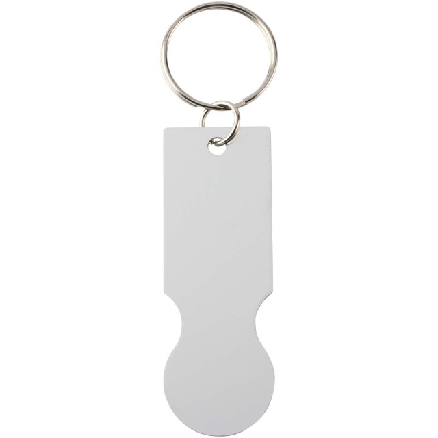 Kovový přívěsek na klíče Rhea s žetonem do nákupního vozíku je navržen tak, aby pasoval do většiny nákupních vozíků, takže je můžete odemknout bez mince nebo žetonu.