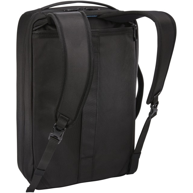 Ekologická brašna 2v1, kterou můžete pro snazší cestování přeměnit na batoh. Obsahuje speciální kapsy na 16" MacBook® nebo 15,6" notebook a 10,5" tablet. Několik vnitřních organizačních kapes udrží obsah v bezpečí, ať už zvolíte verzi batohu nebo brašny, a odnímatelný polstrovaný ramenní popruh zajišťuje pohodlné nošení brašny. Vyrobeno ze 100% recylovaného polyesteru 1680 s certifikací GRS se zipy YKK.