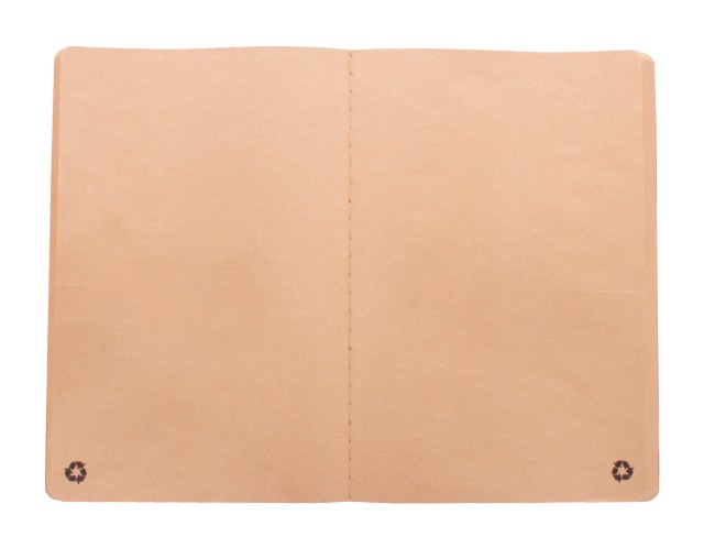 Blok A6 s deskami z recyklovaného papíru, šitý a 60 prázdnými listy z recyklovaného kraftového papíru.