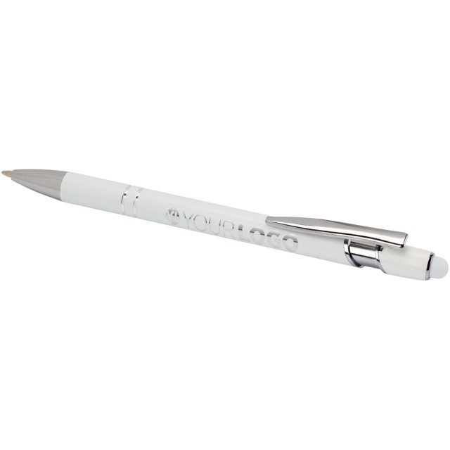 Kuličkové pero Kish se stříbrnou povrchovou úpravou má tělo vyrobené z recyklovaného hliníku a dotykový stylus vyrobený ze silikonu. Snižuje také množství odpadu na skládkách a pomáhá šetřit přírodní zdroje s cílem snížit emise skleníkových plynů. Barva inkoustu: Černá. Délka psaní: 800 metrů. Rozměr hrotu: 1,0 mm.