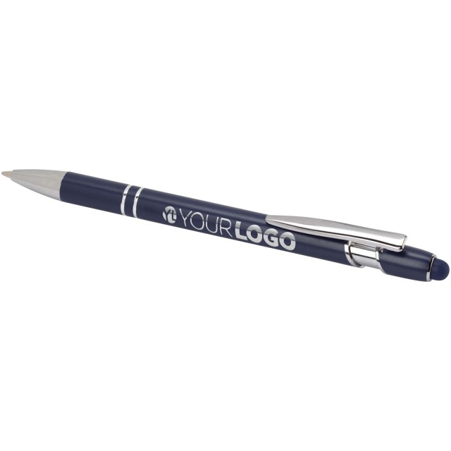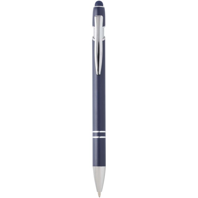 Kuličkové pero Kish se stříbrnou povrchovou úpravou má tělo vyrobené z recyklovaného hliníku a dotykový stylus vyrobený ze silikonu. Snižuje také množství odpadu na skládkách a pomáhá šetřit přírodní zdroje s cílem snížit emise skleníkových plynů. Barva inkoustu: Černá. Délka psaní: 800 metrů. Rozměr hrotu: 1,0 mm.