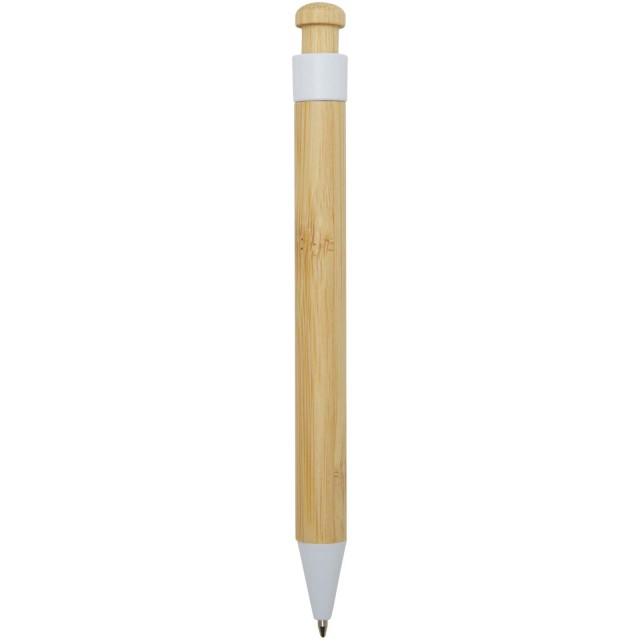 Kuličkové pero s klipem a špičkou z recyklovaného plastu, knoflík a tělo jsou vyrobeny z bambusu. Barva inkoustu: Černá. Délka psaní: 1000 metrů. Rozměr hrotu: 1,0 mm.