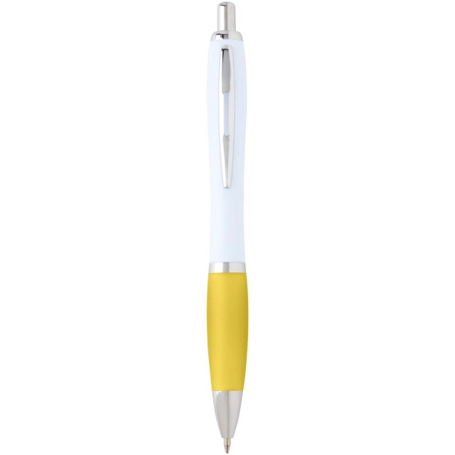 Kuličkové pero Nash se stylovým zaobleným designem a měkkým úchopem je vyrobeno z recyklovaného plastu, který je tvrdý a pevný a nabízí tak dlouhou životnost. Barva inkoustu: Černá. Délka psaní: 1000 metrů. Rozměr hrotu: 1,00 mm.