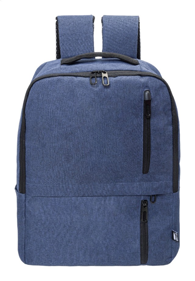 RPET batoh s hlavní přihrádkou na zip a 3 předními kapsami na zip. S polstrovanými přihrádkami na tablet (10") a notebook (15"), polstrovanými zády a ramenními popruhy. 600D RPET polyester s výrazným štítkem RPET.