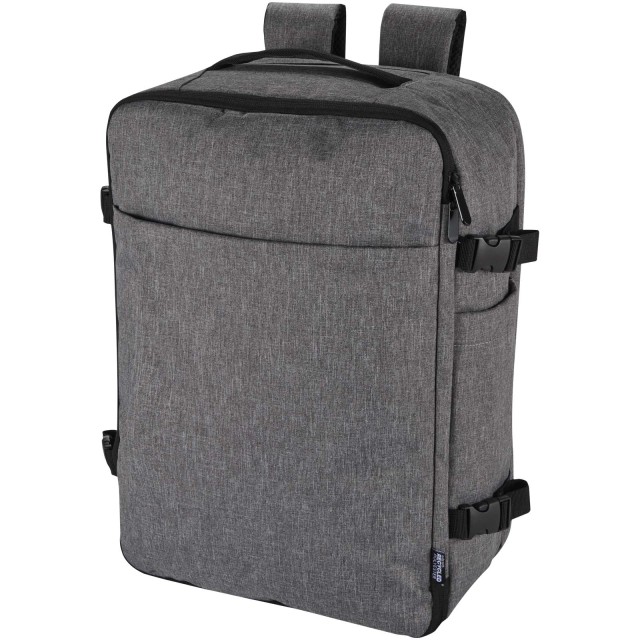 Příruční batoh Libra na notebook o rozměru 17″ je vyroben z recyklovaného polyesteru s certifikací GRS a podšívkou z RPET a je navržen tak, aby splňoval požadavky na příruční zavazadla leteckých společností, což z něj dělá ideálního společníka na cesty. Součástí je samostatný oddíl na notebook do velikosti 17″, prostorná hlavní část s elastickými popruhy a síťovanými přepážkami pro bezpečné a přehledné uložení věcí a dvě velké přední kapsy na zip pro snadný přístup k nezbytnostem. Pro vyšší komfort a pohodlí má batoh prodyšný zádový panel, posuvný popruh, nastavitelné ramenní popruhy s křížovým hrudním popruhem a horní i boční rukojeti pro všechny varianty nošení. Tento batoh, vhodný pro služební cesty, práci na dálku nebo víkendové cestování, kombinuje elegantní design s praktickými funkcemi pro život na cestách.