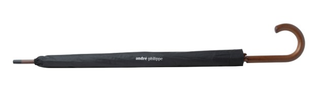 Automatický, větru odolný deštník s 8 panely, dřevěnou rukojetí, tyčkou a konci, kovovým rámem a sklolaminátovými žebry. 190T RPET pongee. Ve značkovém obalu, s etiketou s označením RPET. Značkový produkt André Philippe.