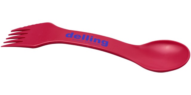 Kombinovaná vidlička a lžíce s vroubkovaným ostřím, které je ideální pro kempování, piknik a další outdoorové aktivity. .