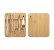 5dílná sada na manikúru z nerezové oceli v bambusové krabičce s magnetickým víkem. Obsahuje kleštičky, nůžky na nehty, pilník na nehty a 2 odstraňovače kůžičky.