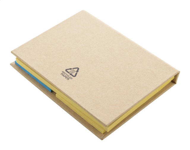 Samolepicí poznámkový blok z recyklovaného papíru s 50 velkými a 25 středními žlutými poznámkami a 125 značkovači stránek (v 5 barvách).