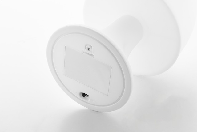 Plastová stolní lampa s bílým světlem LED. Funguje na 3 baterie AAA, bez baterií.
