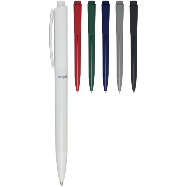 Kuličkové pero s tělem a sponou z recyklovaného plastu a hrotem z nerezové oceli. Barva inkoustu: Modrá. Délka psaní: 3000 metrů. Rozměr hrotu: 1,00 mm. Vyrobeno v Německu.