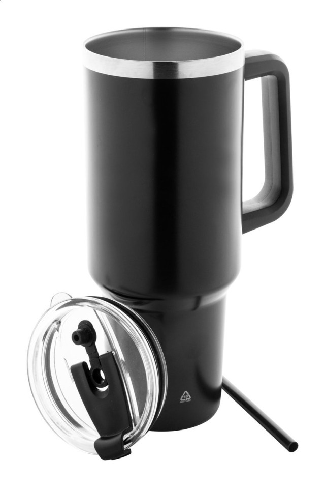 Dvouplášťový vakuově izolovaný termo hrnek z recyklované nerezové oceli s PS víčkem na pití a PP brčkem. 1200 ml.