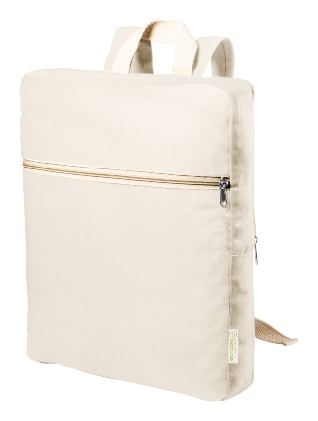 Batoh z recyklované bavlny s přihrádkou na zip a přední kapsou. S výrazným štítkem z recyklované bavlny. 100% recyklovaná bavlna, 275 g/m².