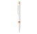Kuličkové pero z recyklovaného hliníku s bambusovými částmi, pogumovaným povrchem a chromovým klipem. Se speciální vrstvou pro zrcadlové laserové gravírování. S modrou náplní.