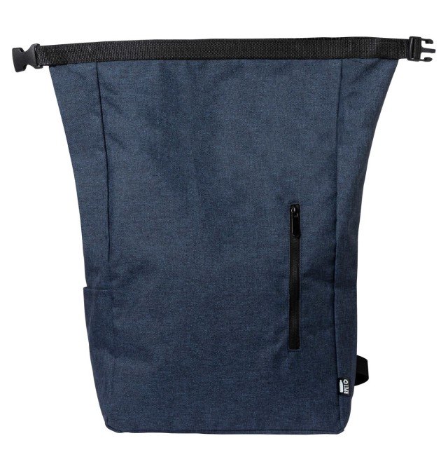 Vodotěsný, rolovací batoh z RPET s boční kapsou, přední kapsou na zip, polstrovanými zády a ramenními popruhy. S výrazným štítkem RPET. Polyester 300D RPET.