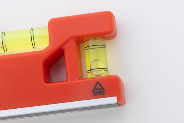 Multifunkční přívěšek na klíče z recyklovaného ABS s kovovým kroužkem, pravítkem, magnetem a dvojitou vodováhou.