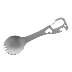 Nerezový příbor (lžíce a vidlička), multifunkční nástroj s karabinou.