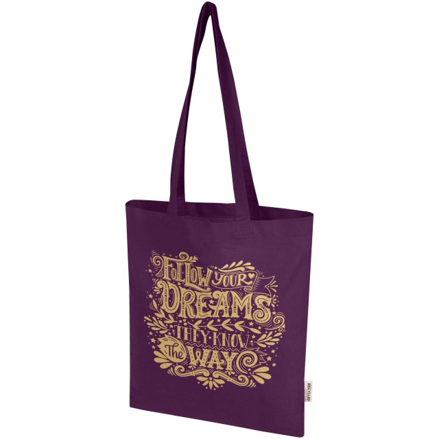 Nákupní taška Madras Blend vyrobená ze 60 % z recyklované bavlny s certifikací GRS a ze 40 % z GRS RPET je ideální taška, kterou můžete vzít na jakoukoliv akci, konferenci nebo ji použít jako tašku na malý nákup. Díky hustotě bavlny 140 g/m² je taška pevná, má dlouhou životnost a je vhodná pro nošení těžkých předmětů v hlavní přihrádce. Díky 30cm uchům přes rameno se tato taška dobře nosí. Metody tisku na tuto tašku mají také certifikaci GRS, což zajišťuje, že je celý dodavatelský řetězec transparentní a certifikovaný. Vyrobeno v Indii. Nosnost do 5 kg. Objemová kapacita: 7 litrů.