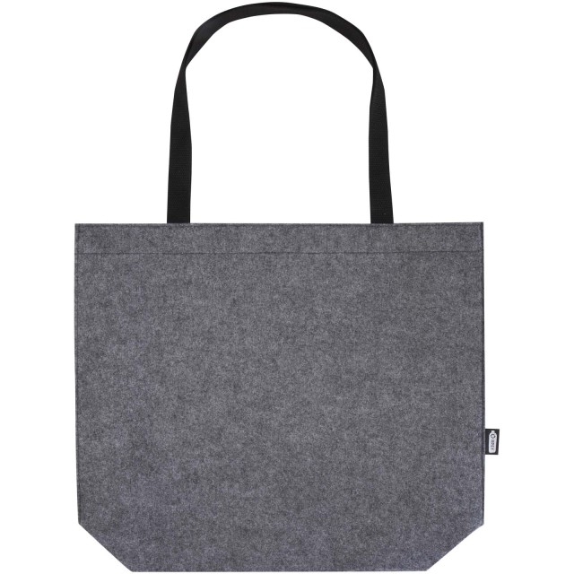 Velká nákupní taška vyrobená z měkké, odolné a špičkové recyklované plsti s certifikací GRS. Taška má velkou hlavní přihrádku se spoustou místa (až 20 litrů), vyztužená tkaná bavlněná ucha (30 × 2,5 cm) pro optimální pohodlí při nošení a zapínací knoflík v horní části.