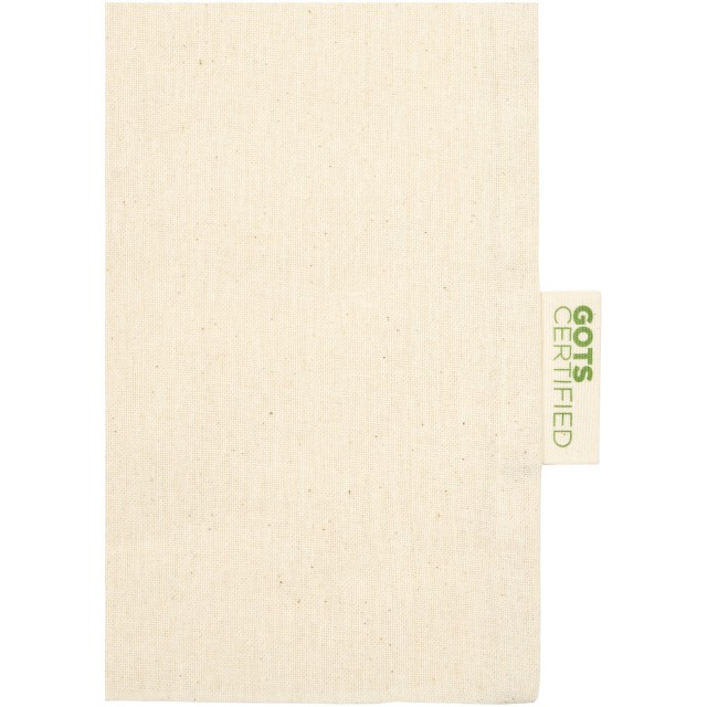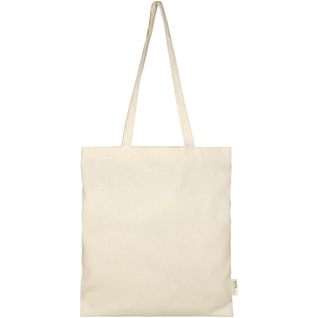 Dokonalá bavlněná nákupní taška s certifikátem GOTS , kterou můžete rozdávat během jakékoliv akce, konference nebo použít jako nákupní tašku pro malé nákupy. Díky hustotě bavlny 140 g/m² je taška pevná, má dlouhou životnost a je vhodná pro přepravu těžkých předmětů. Má 32cm dlouhá ucha, takže se snadno nosí přes rameno.