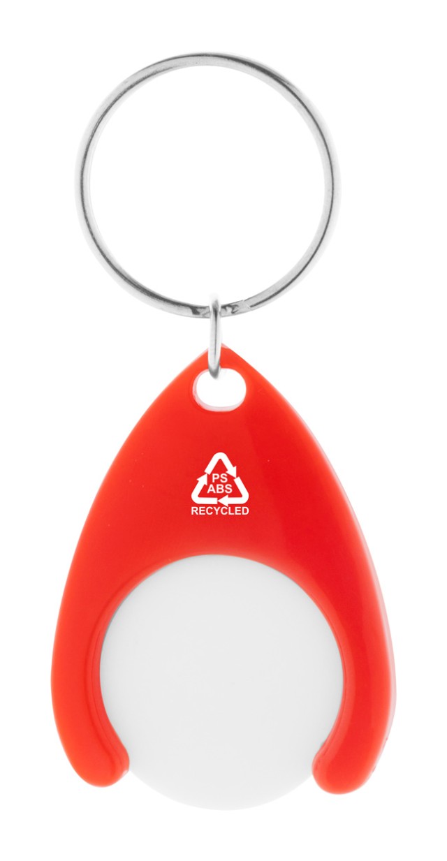 Přívěšek na klíče z recyklovaného ABS a recyklovaného plastu PS se žetonem do nákupního vozíku a kovovým kroužkem. Velikost mince: ø24×2 mm.