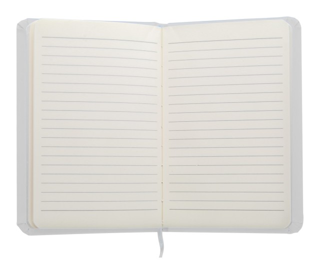 Blok s deskami z PU kůže, se 100 linkovanými listy, záložkou a gumičkou. Velikost A6.