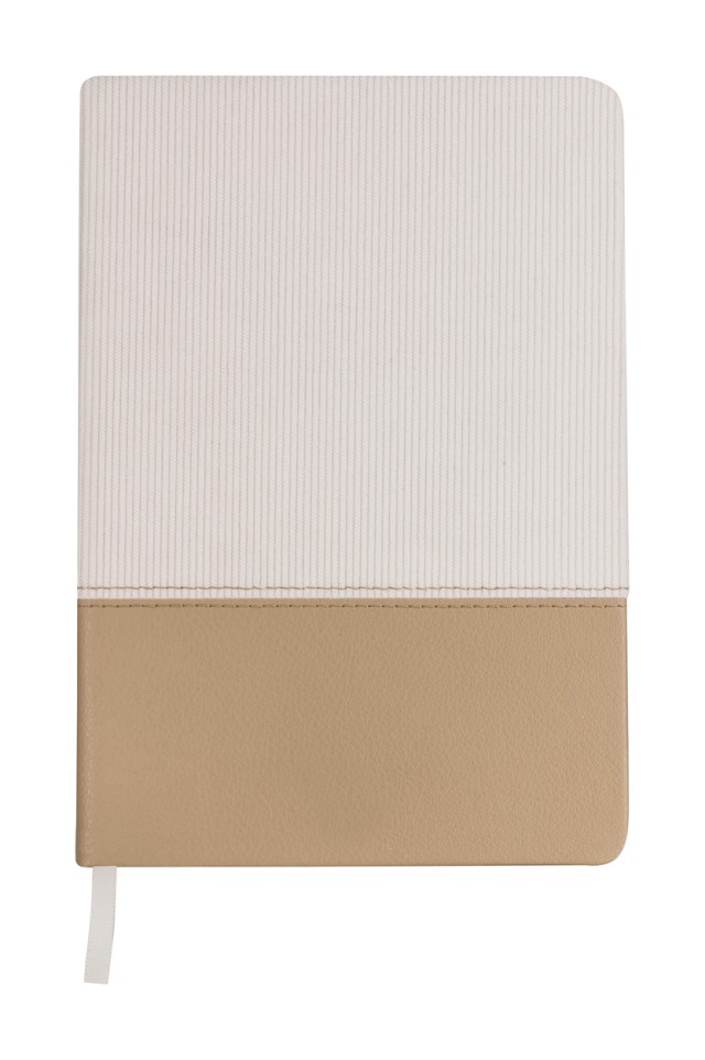 Blok A5 potažený texturovaným polyesterem a recyklovanou PU kůží se záložkou a 80 linkovanými listy.