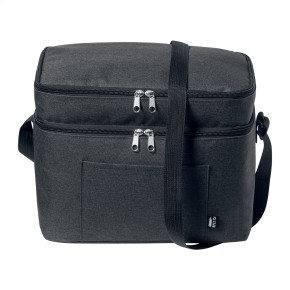 Chladicí taška z 600D RPET polyesteru s PEVA výstelkou, se 2 přihrádkami na zip a nastavitelným ramenním popruhem. S výrazným štítkem RPET.