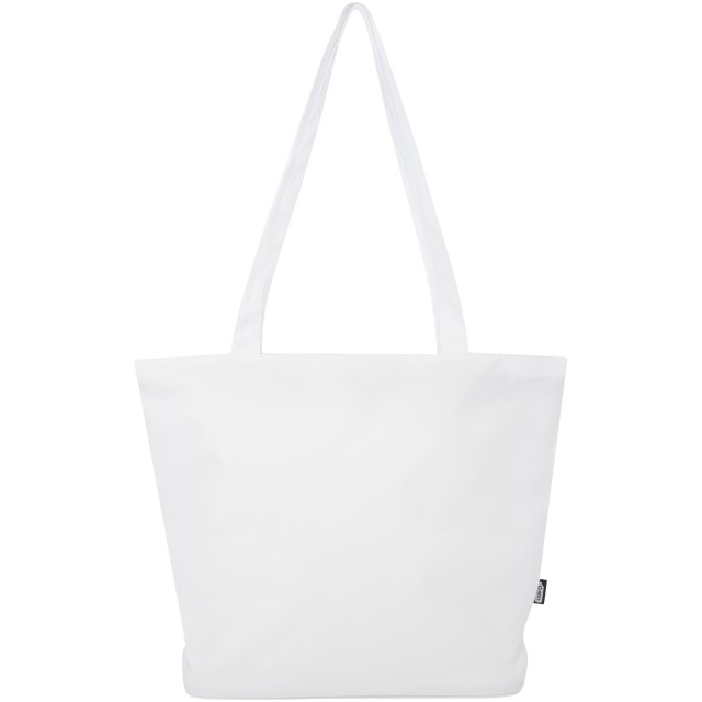 Vyrobená z vodoodpudivého 600D RPET, Panama GRS recyklovaná nákupní taška na zip je perfektní a udržitelná víceúčelová taška na akci, na pláž. nebo pro použití k nákupu potravin. Má hlavní přihrádku na zip a kapsu na zip uvnitř dostatečně velkou, aby se do ní vešel váš telefon a další cenné věci. Ucha jsou dlouhá 34 cm, a proto se nákupní taška snadno přenáší přes rameno. Nosnost do 10 kg. Neobsahuje PVC.