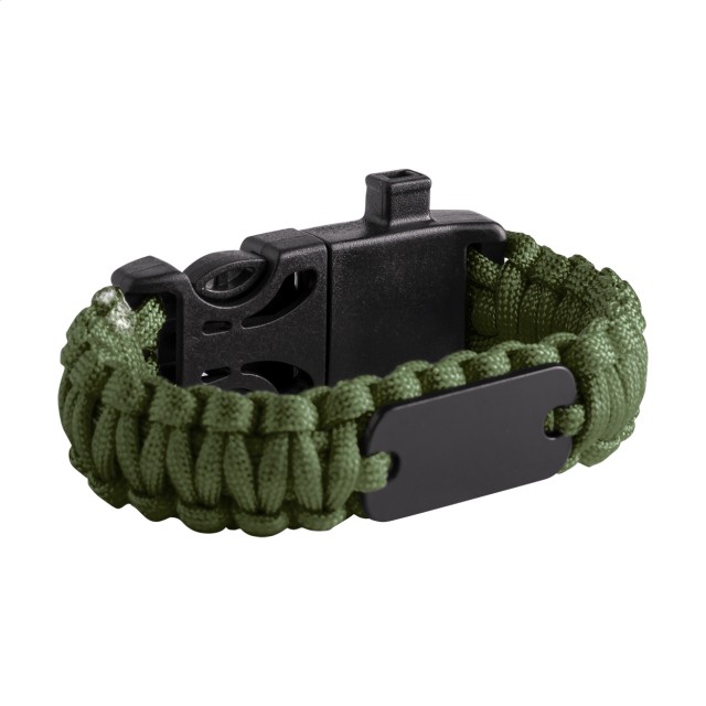 Multifunkční náramek na přežití z padákového nylonu s kompasem, píšťalkou a křesacím kamínkem na zapálení ohně.