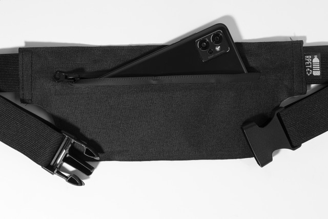 Úzká ledvinka z RPET s přihrádkou na zip a nastavitelným elastickým popruhem. 300D RPET polyester s charakteristickým štítkem RPET.