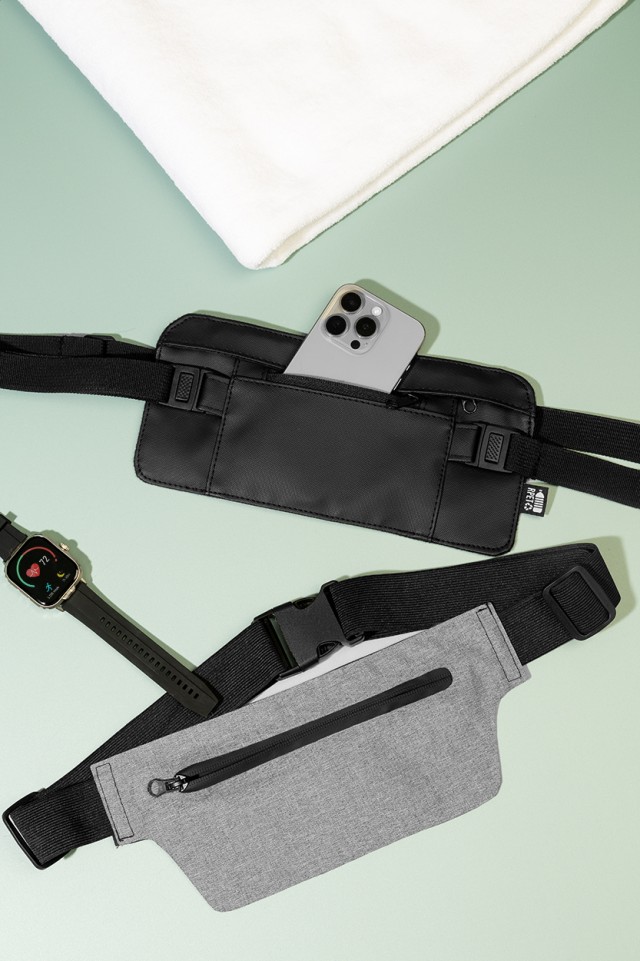 Úzká ledvinka z RPET s přihrádkou na zip a nastavitelným elastickým popruhem. 300D RPET polyester s charakteristickým štítkem RPET.