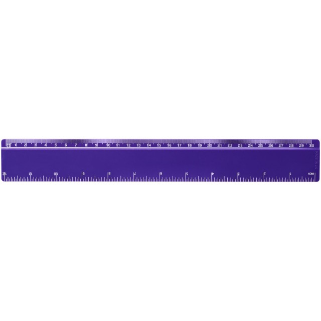 Pevné plastové pravítko se značením v centimetrech a palcích.