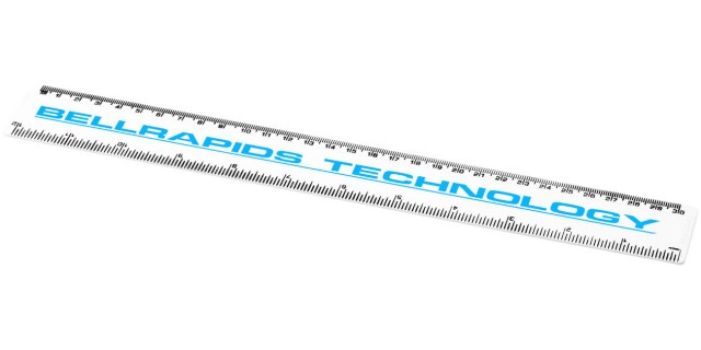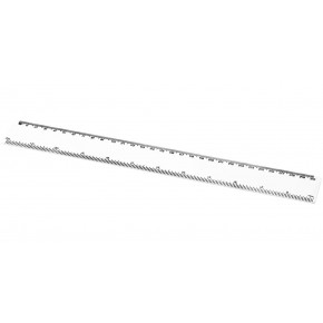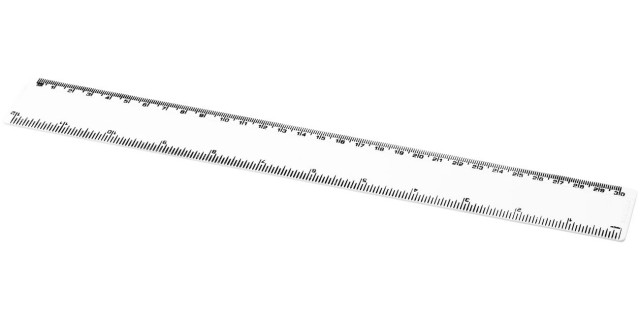 Pevné plastové pravítko se značením v centimetrech a palcích.