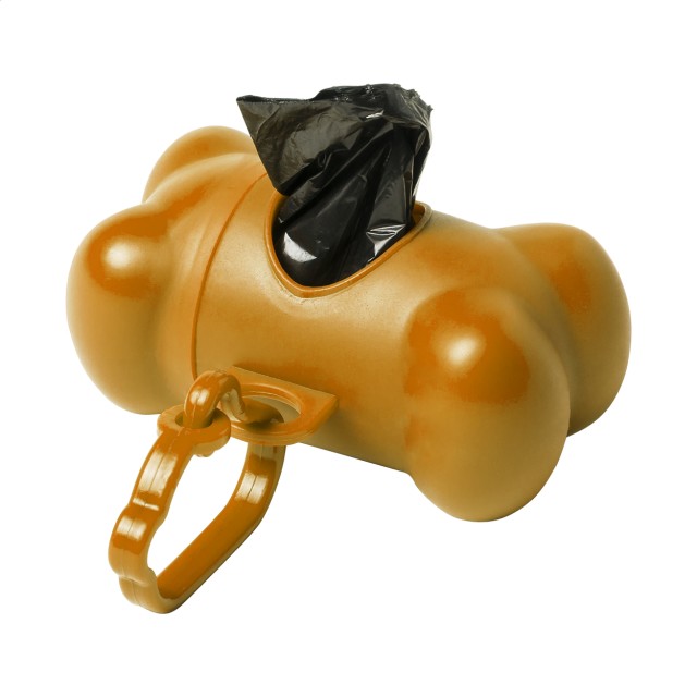 Plastový zásobník ve tvaru kosti s 15 pytlíky na psí exkrementy s karabinkou.