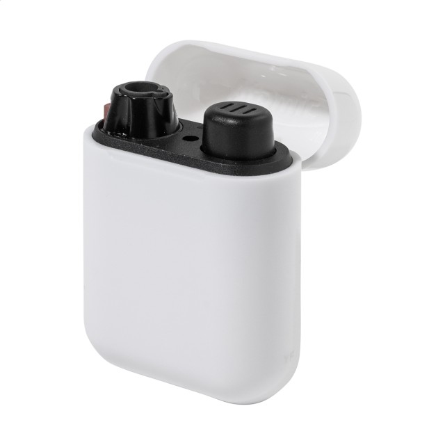 Plnitelný plastový piezoelektrický zapalovač v moderním pouzdře inspirovaném designem moderních bezdrátových sluchátek. Dětská pojistka. Dodává se s přibližně 80% hladinou plynu. K dispozici pouze v plném exportním kartonovém množství (násobky 500 kusů)!