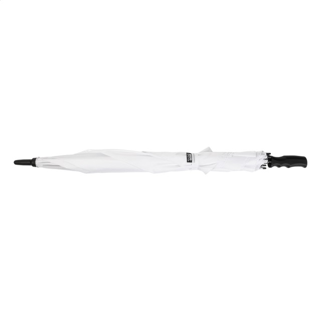 Velký automatický větruodolný čtvercový deštník s celolaminátovou tyčí a rámem, pogumovanou ABS rukojetí. 190T RPET pongee. S charakteristickým RPET štítkem.