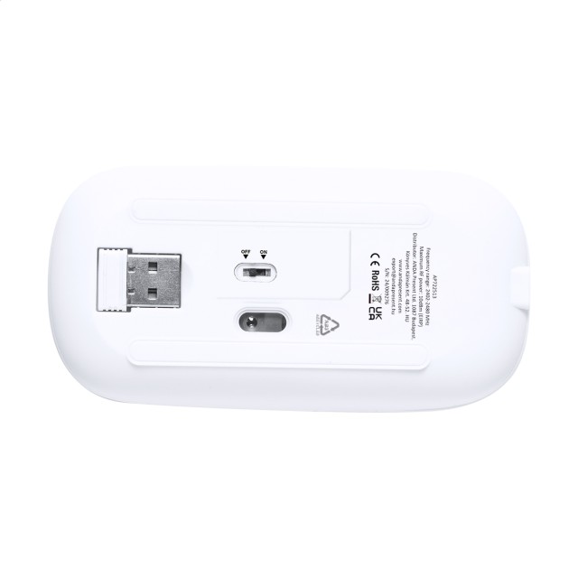 Bezdrátová optická myš s krytem z recyklovaného ABS plastu a vestavěnou dobíjecí baterií. Včetně USB nabíjecího kabelu.