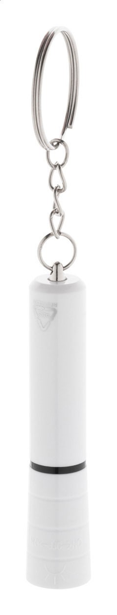 Mini baterka s 1 LED, z recyklovaného ABS plastu s kovovým povrchem a kovovým kroužkem na klíče. S knoflíkovou baterií.