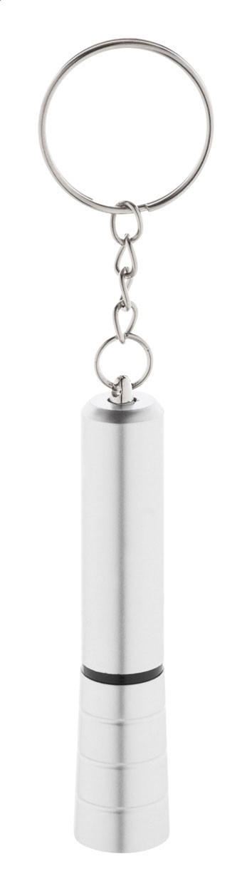 Mini baterka s 1 LED, z recyklovaného ABS plastu s kovovým povrchem a kovovým kroužkem na klíče. S knoflíkovou baterií.