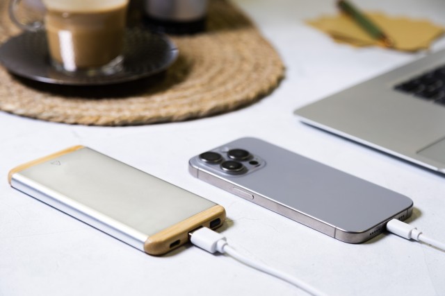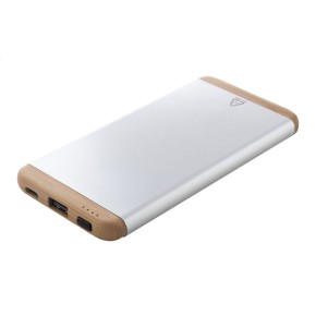 Power banka z recyklovaného hliníku a bambusu s baterií 5000 mAh. S 1 portem USB a 1 portem USB-C pro nabíječku. Vstupní port USB-C. Včetně USB nabíjecího kabelu.
